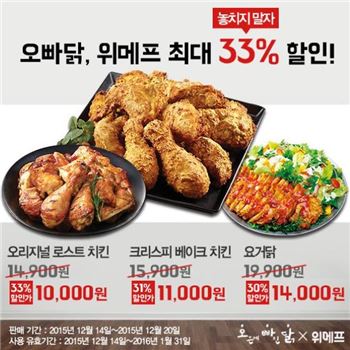 오븐에빠진닭(이하 오빠닭)이 소셜커머스 위메프와 프로모션을 진행한다고 15일 밝혔다.